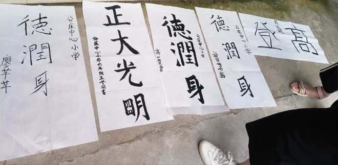 上午十點在學(xué)生們以及老師們熱情的歡迎儀式以及物資捐獻(xiàn)之后,此次活動的主辦方以及學(xué)校領(lǐng)導(dǎo)分別上臺簡單的表達(dá)了此次活動對于孩子們的意義并號召孩子們進(jìn)行了一場“書法比賽”,現(xiàn)場也請來了多名在書法界頗有造詣的專家對孩子們的書法進(jìn)行點評,這次活動,給同學(xué)們搭建了展示風(fēng)采的舞臺,提高了同學(xué)們對正確、美觀書寫的認(rèn)識,培養(yǎng)了同學(xué)們良好的寫字習(xí)慣,激發(fā)了寫字的興趣,營造了濃厚的寫字氛圍,陶冶了學(xué)生的情操,豐富了我們的校園文化生活。比賽中書寫出許多優(yōu)秀作品,真正賽出了水平,將書法藝術(shù)——中華傳統(tǒng)文化發(fā)揚光大,增強了對祖國文化瑰寶的熱愛。