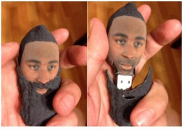 另一方面,如今在市面上出現(xiàn)了一款以“大胡子”哈登為原型的U盤,這個哈登U盤最大的亮點是它的保護蓋竟然是哈登的大胡子。是的,當你使用這個USB存儲器時,首先要做的就是將哈登的“大胡子”取下;而在使用完畢之后,則需要套上“大胡子”。就是這么一款個性U盤,它也是最好玩的NBA球員附屬品之一。