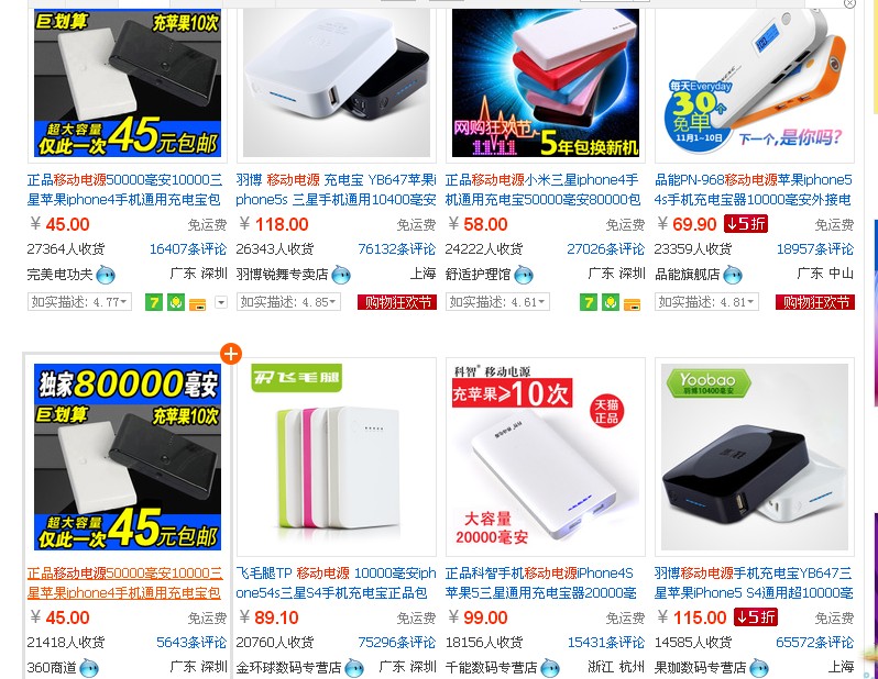 網(wǎng)購已成為一種時尚,而網(wǎng)上價格站打的非常激烈,很多手機(jī)移動電源品牌產(chǎn)品也不得不壓低自己的價格來博得消費者的青睞。暴利多銷,成本低廉等等因素使得網(wǎng)絡(luò)成為了各種各樣商家必爭之道。我們看到下面圖中很多銷售量看起來非常好的,那么它就值得選購么?