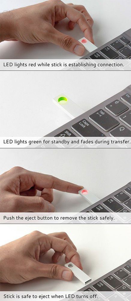 這款U盤是由一位名叫Ahmet Burak Aktas的網(wǎng)友設(shè)計。其外形看起來跟普通U盤相差不大,但是尾部處有一個按鈕,使用完之后,按一下就可以從電腦彈出,直接就可以拔掉。
